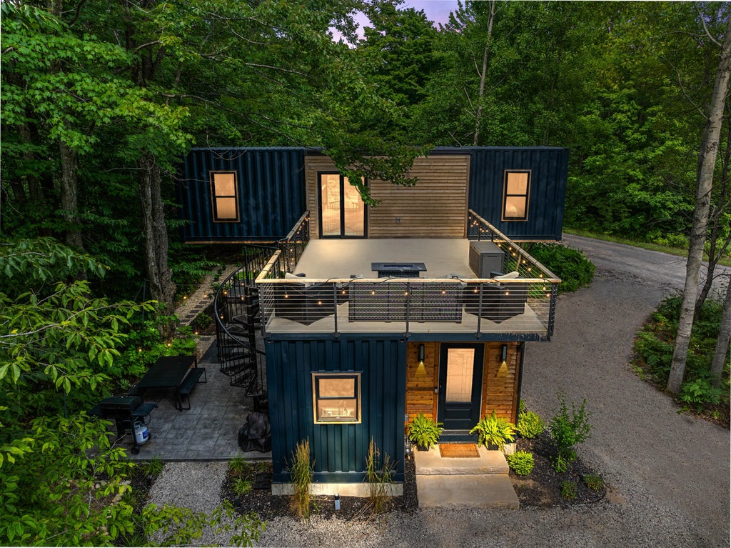 Experience the beauty of Northern Michigan in this modern shipping container home, built in 2022 and located in the ''Lakes of the North'' development. Nestled among the trees, this home is made from three 40-foot containers with cedar accents and features a ground-level patio with an outdoor dining area, wood fire-pit, gas grill, and a six-person hot tub. A spiral staircase leads to a spacious rooftop deck perfect for relaxation with outdoor furniture and a propane fire table. Inside, the open-concept design offers a contemporary and inviting living space with 3 bedrooms and 2 full bathrooms. Boyne Mountain, Schuss Mountain, and Gaylord, MI, all just 25 minutes away. Perfect for a personal getaway or keep it as a successful short-term rental investment. Finances are available by request