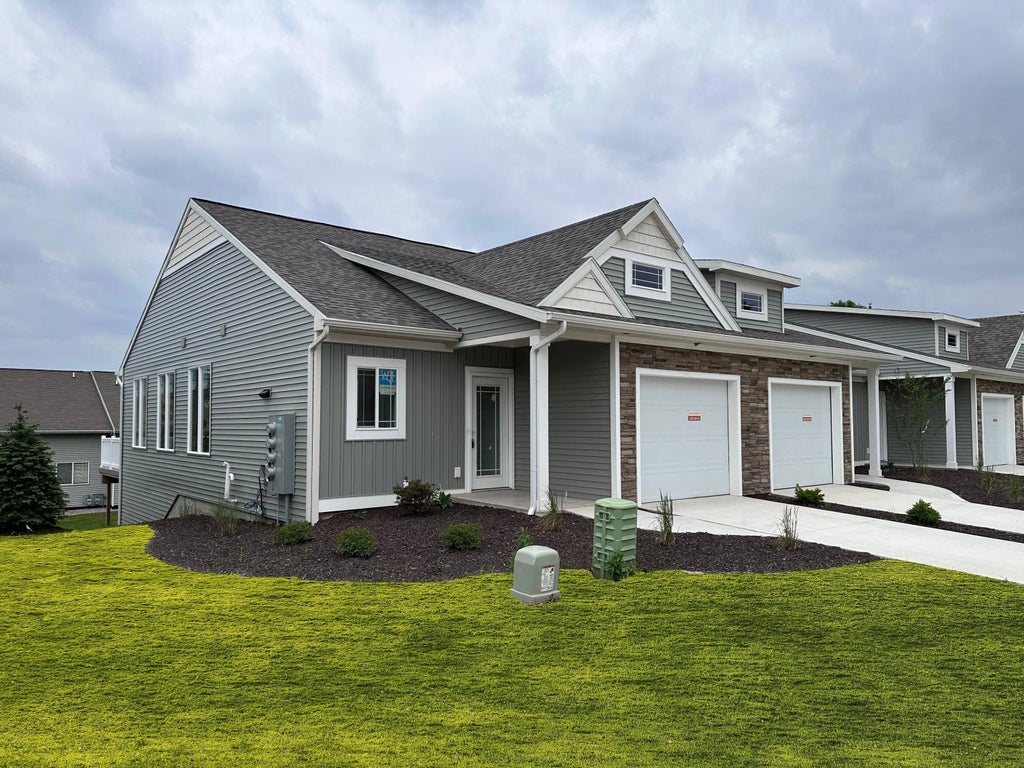 Welcome to the newest building here in the Trails of Sierrafield located at 1215 Madera Ct! This gorgeous end unit offers main floor living, tall ceilings & beautiful LVP floors in the living room that flow into the kitchen & dining area. Completing the main floor is a primary suite with a recessed ceiling & convenient access to the laundry room. The view from your private deck is perfect for that morning cup of coffee, a quiet retreat, or entertaining guests! No Step Entrance from the garage & front entrance makes this a zero-entry condo. This listing represents a condo with an unfinished walkout lower level. A finished lower level could add a second bedroom, second full bath, & a family room. Members of Selling Entity are licensed real estate brokers in the State of Michigan.