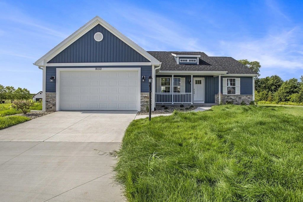 Step into superior new construction by Watts Homes in the sought-after Cottage Pointe community. The York plan offers cathedral ceilings, a sun-filled great room, and a designer kitchen with quartz countertops, island, custom cabinetry, and full appliance suite. The private primary suite features vaulted ceilings, a walk-in closet, and spa-style bath. A second bedroom and full bath sit opposite for privacy. Rear entry has a built-in bench, pantry, and laundry space. The walkout lower level is ready to finish. Includes patio and deck, sprinkling, landscaping, and attached 2-stall garage.