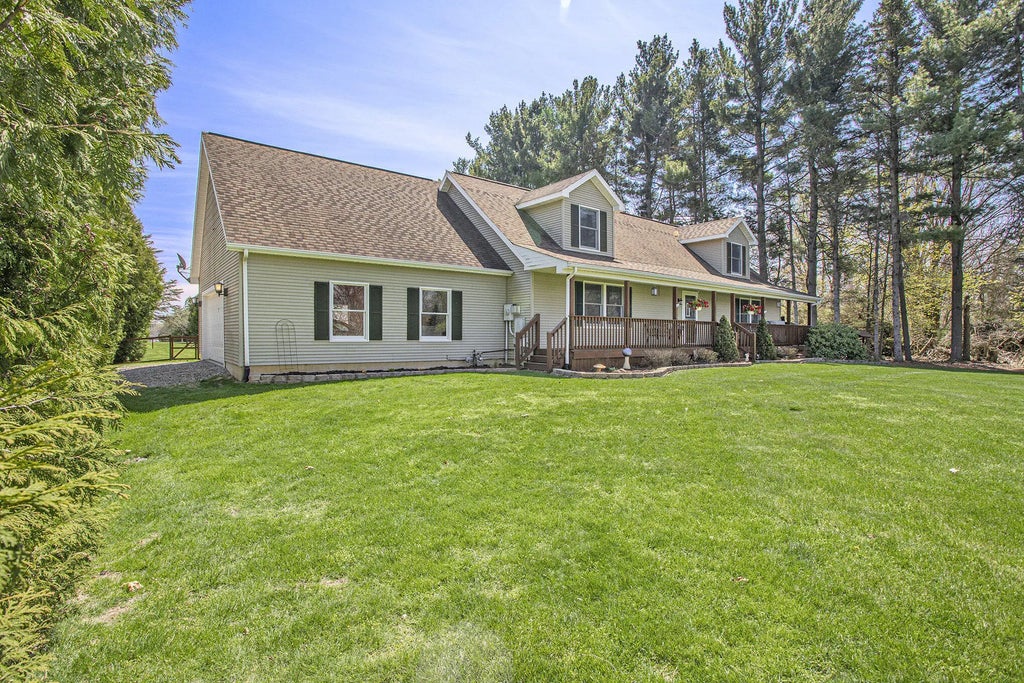 Seller offering to buy down interest rate, call to see if you qualify for 4.625%. Welcome to your dream home! Nestled on over 3 acres of serene countryside, this beautifully maintained 4-bedroom, 3-full bath home offers the perfect blend of comfort, space, and luxury. The primary suite is a private retreat featuring a massive spa-like ensuite complete with a walk-in tiled shower and double sinks. Open kitchen/dining space has a large pantry, eat in snack bar and stainless steel appliances. The peaceful setting is enhanced by a mature, tree-lined drive and a fully fenced-in backyard—perfect for pets, kids, or simply enjoying the great outdoors. Step onto the large front porch, ideal for morning coffee or relaxing evenings. Imagine the possibilities in the expansive basement, ready to become your dream media room, home gym, or additional family space. Even more room to play in the additional pole building, which includes a rec room, bathroom and plenty of extra storage for all the toys! Bring your kayaks and paddleboards and enjoy the access to an all-sports lake. This is more than a home, it's a lifestyle. Come experience it for yourself! This company makes no warranty or representations about the contents of this data including room sizes & sq. footage. It is the responsibility of the parties looking at the property to satisfy themselves as to the accuracy of this information. Taxes were obtained from the local assessor and the taxes could change for the buyer after a closed transaction.