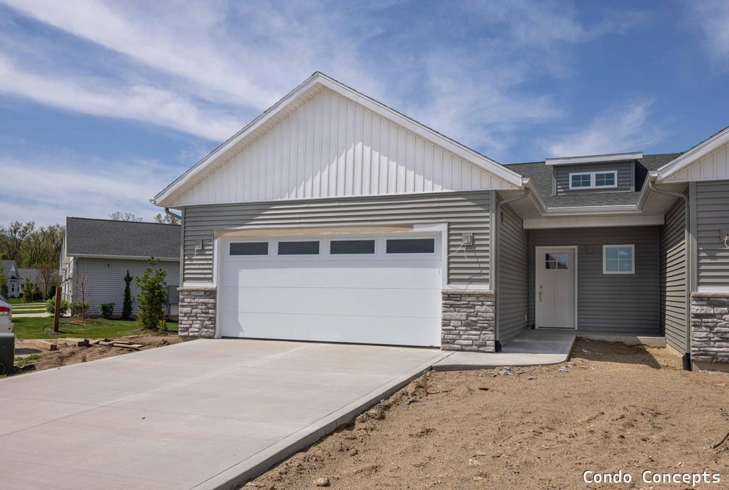 Discover a rare lakefront community in Gaines township offering new zero step condos with beautiful sunset views over Sailor Lake. With regular sightings of eagles, osprey, and loons, neighbors enjoy kayaking, paddle boarding, swimming & fishing out their back door. Nearby walking/cycling trails lead to Meijer, Caledonia, Byron or downtown & you can walk to the library in 5 minutes. Offering 9 & 10 ft ceilings, quartz counters, 6 ft island, main floor laundry, a main level deck plus a private 10x17 lakeside patio there is a lot to like. We have other condos available so stop by & take a look at the open house every Wed. 4-6 or Sat. 11-1, or call. Lighting and plumbing fixtures are the only items remaining so moving day could be only weeks away. Listing broker has ownership interest.