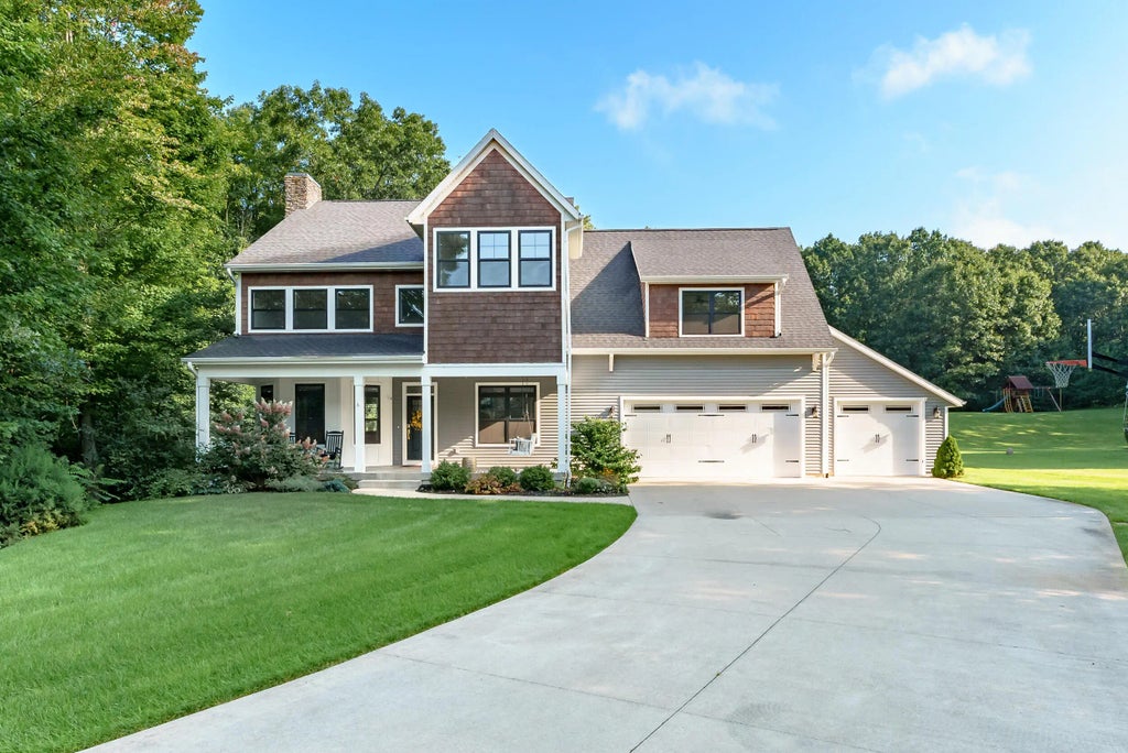 Seller offering $10,000 credit towards closing costs!!! Welcome to a truly exceptional residence offering over 5,000 square feet of finished living space, set on a picturesque acre lot designed for privacy, comfort, and timeless appeal. This is not your typical cookie-cutter home — every detail has been thoughtfully crafted for style and distinction. Step inside to discover rich hardwood floors, elegant coffered ceilings, and architectural touches that set this home apart. The heart of the home is the stunning chef's kitchen, beautifully appointed with high-end finishes, custom cabinetry, and generous workspace — ideal for entertaining and everyday living. Each of the four spacious bedrooms features a private ensuite, providing both luxury and convenience for family and guests. The primary suite is a true sanctuary, with lavish proportions, in a spa-inspired bathroom. Unwind in the dedicated hot tub room, or enjoy the outdoors year-round from the covered front and back porches, ideal for morning coffee or evening gatherings. The home's exterior shake detailing adds warmth and curb appeal, further emphasizing its one-of-a-kind design. If you're seeking a refined, well-designed custom home with character and quality throughout, this property is a must-see.