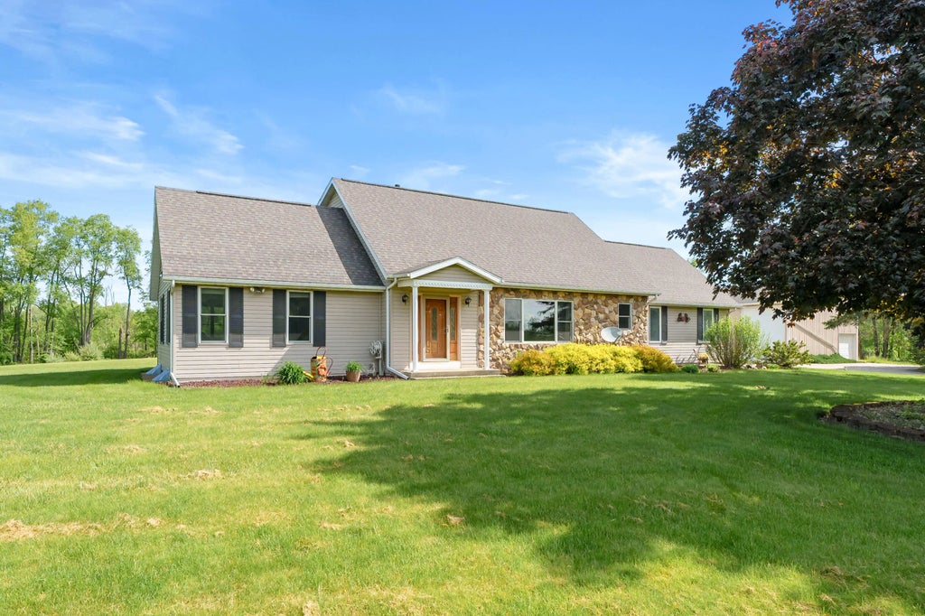 This move in ready home is nestled on a quiet country road surrounded by 40 private acres. Imagine stepping away from the screen and laying down on a blanket basking at the stars. A soaring foyer and natural light from the large LR greet you as you enter. This flows into the well appointed kitchen complete w SS appl, Amish crafted cabinets, eating area & views of the magnificent property. Sprawl out for movie night in the FR which is adjacent to the 3 seasons porch. The primary is the perfect size complete w views & full bath. Main floor laundry and 1/2 bath complete this level. The sounds of nature will rock you to sleep in the 2 expansive rooms upstairs which also boasts full bath and tons of storage. A full bath and 2 non conforming bed rooms complete the basement. This listing also includes an enormous barn w heat and AC along w a pond house. Only about 10 minutes to Schoolcraft and the highway. It's time to enjoy country living. You will never regret it!