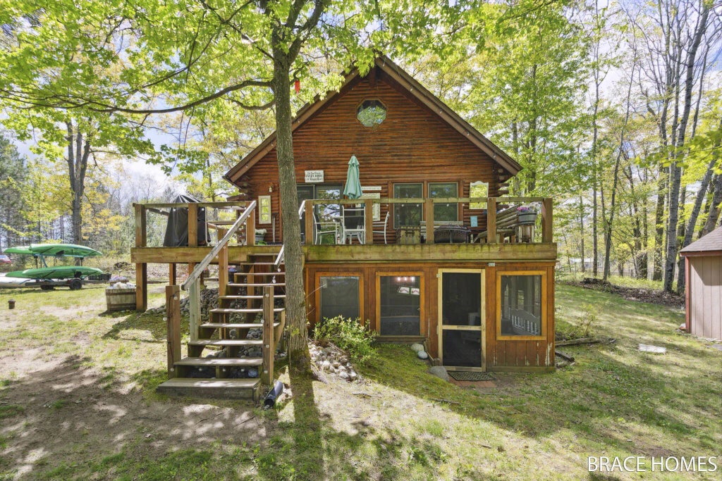 Just off the beaten path, this stunning cedar log home offers a peaceful escape on the Muskegon River. With over 1,300 sq ft, it features 3 beds, 1.5 baths, two living areas, and a walkout basement. Enjoy panoramic river views from the living room or step onto the wraparound Trex deck to relax by the water. Upstairs, a second bedroom includes three built-in twin beds—perfect for guests. Just down the street, enjoy private access to 300+ acres of state land, ideal for hunting or exploring. An additional lot across the street is included—great for a future pole barn. Currently a very successful Airbnb, this home is ready to enjoy or rent! Year built is unknown. All furniture is negotiable! Can be sold with MLS #25026273. Call today!