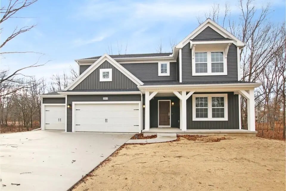 MOVE-IN-READY New construction home in Applegate Pines, located in Portage school district. RESNET energy smart construction will save owner over $1000 yearly plus home has 10-year structural warranty! This stunning home features 4 bedrooms, 2.5 baths, 3.070 sqft of living space, upgraded finishes and wood laminate flooring throughout the entire first floor. The grand foyer opens to the den with French door entry, powder room and closet. Moving through the home, find a mudroom with a large storage closet off the garage. Step into the spacious open concept main living space where the kitchen, nook & great room offer open sight lines to optimize efficiency and cohesion. The kitchen includes a 72 inch island with extended edge, quartz counters accented by tile backsplash and white cabinetry. The kitchen also features a large pantry and a butler pantry. The large great room features an abundance of natural lighting from 3 windows. The second floor includes four bedrooms - each with a walk in closet, laundry room and full bath with separate vanity access. Relax in the primary suite with private bath and walk in closets. Home is located on a daylight site, which includes three daylight windows in unfinished basement. Homes in the market average being 15 years old with 500 sq. ft. less space.