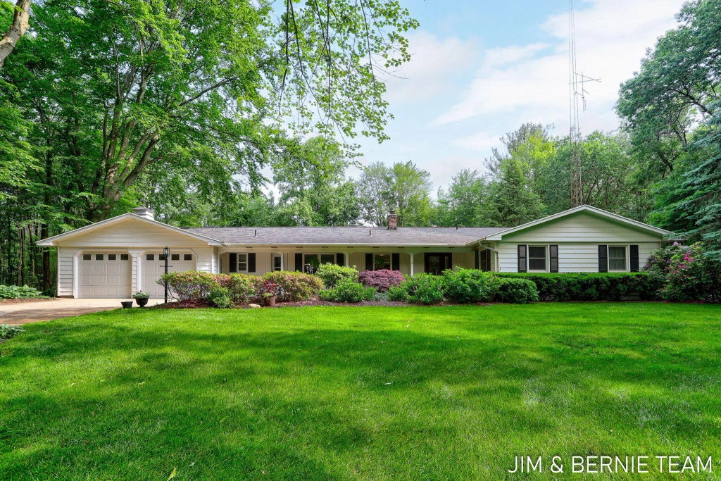Peaceful Lakeshore Retreat on 3 Acres! Looking for a serene escape that's still close to all the Lakeshore fun? This beautifully situated 3-acre property offers the perfect blend of tranquility and convenience. The well-designed ranch-style home features four main floor bedrooms, a cozy living room with a gas-log fireplace, and both formal and informal dining areas. The kitchen overlooks the peaceful yard, while a spacious laundry/mudroom provides a practical entry from the attached garage. Downstairs, the walk-out basement is ideal for entertaining, with a second gas-log fireplace, a classic bar area, a generous recreation room, a 5th bedroom, and a second half bath—plus plenty of storage. Step outside to enjoy the screened porch, large patio, and fire pit areaperfect for relaxing or entertaining. Underground sprinkling, a fenced garden space, and a detached garage with electricity add even more function and flexibility for hobbies, vehicles, or extra storage.