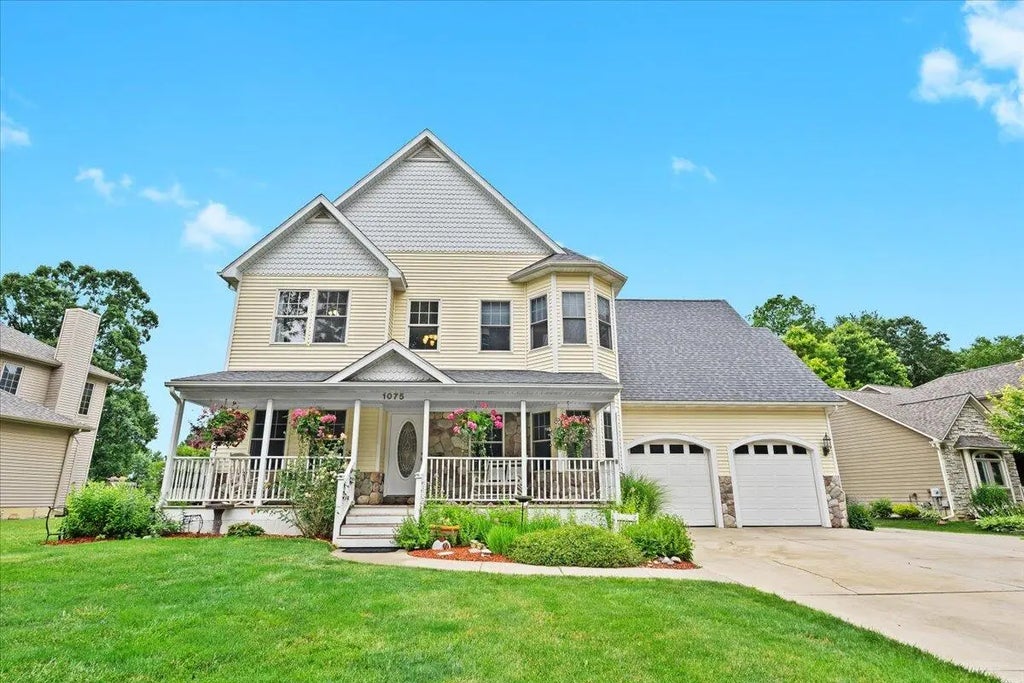 Looking for space, versatility, and charm? This 4,000 sq ft custom Victorian-style home on a private 0.4-acre lot has it all—including a rare attached in-law apartment with its own entrance. Ideal for multi-generational living, long-term guests, or live-in support. The in-law apartment is a full living space- with 2 of the 6 bedrooms, full kitchen, its own separate furnace, and that handicap accessible walk in tub. All 6 bedrooms are generously sized with great closets and views. Open-concept kitchen/family room features a hand-carved fireplace and deck access. Bonus room over garage with vaulted pine ceiling. Enjoy a backyard overlooking a peaceful pond and fountain. Full basement with high ceilings, egress, and plumbing—ready to finish. New roof and A/C.