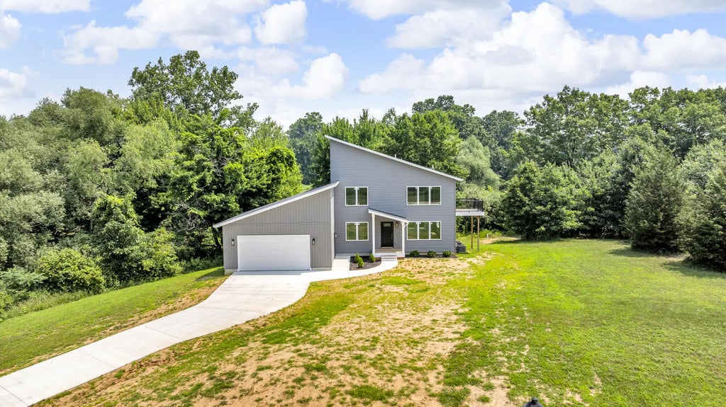 Brand new 2025 contemporary home w/captivating lake views, part of a chain of 7 lakes, seasonal views of Price Lake. Thoughtfully designed w/4 bedrooms & 3.5 baths, attached 2-car garage on 2.16-acre lot. Welcoming foyer opens to living rm. A stunning kitchen showcases granite countertops, center island, soft-close cabinetry, ample storage, & a full appliance package. Dining area opens to deck, perfect for grilling out. Main floor bedroom or use as a home office, full bath & laundry. Upstairs offers 3 BR, full bath. Serene primary suite w/a private bath, walk-in closet w/built-ins & balcony. Finished basement has family rm, 1/2 bath, & generous storage. High-end mechanicals: 2 furnaces, tankless water heater, LED recessed lighting, 200 AMP service. Surrounded by peaceful water & nature views w/out paying the waterfront taxes. Potential to build a barn-confirm w/township.