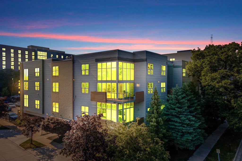 This sleek 2BR/2BA condo at Troy Street Lofts, a contemporary loft building in the heart of downtown Royal Oak, offers a perfect blend of style and functionality just steps from restaurants, shops, parks, and entertainment. Tall ceilings, exposed ductwork, and expansive floor-to-ceiling windows fill the open-concept space with natural light. The main living area features industrial charm with gleaming hardwood floors and a modern kitchen. The 2nd bedroom has been converted into a versatile den with a desk nook and walk-in closet, easily reverted back. Additional highlights include a large balcony, in-unit laundry, storage room, secure app entry, and covered garage parking.