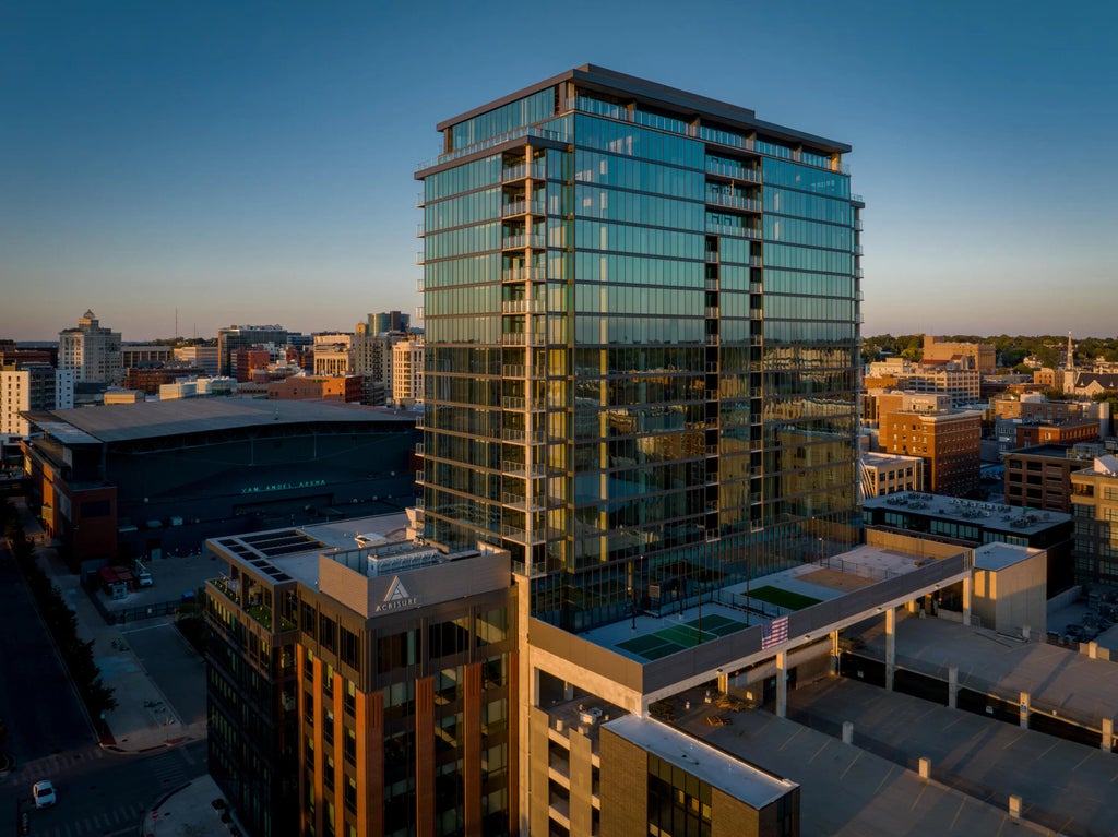 Nestled in the heart of downtown Grand Rapids, Studio Park Tower Apartments provide an urban lifestyle with suburban comfort. Each unit is a radiant sanctuary, featuring sleek floor-to-ceiling windows that bring an abundance of natural light to the living space. This north-facing studio unit overlooks downtown Grand Rapids and the Van Andel Arena. A thoughtfully considered kitchen features high-end finishes with contemporary design, perfect for gatherings large or small. Residents in Studio Park Tower will enjoy world-class amenities including a state of the art community room, on-site workspace, pickleball court, golf simulator, sauna, fitness facility, competition-length swimming pool, outdoor entertainment space, dog wash, sundeck, and covererd parking.