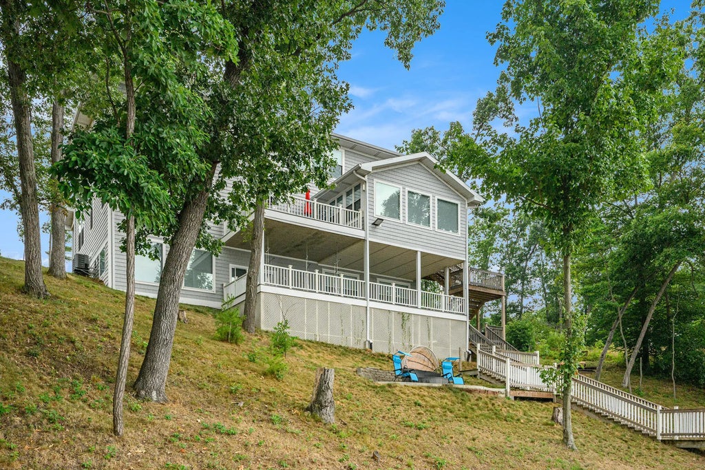 Step outside onto the Trex deck off the kitchen, ideal for sunset grilling sessions, or wander down to the lower-level walkout, where a covered patio with eight hammock swings invites hours of lakeside lounging, naps, and storytelling under the stars.