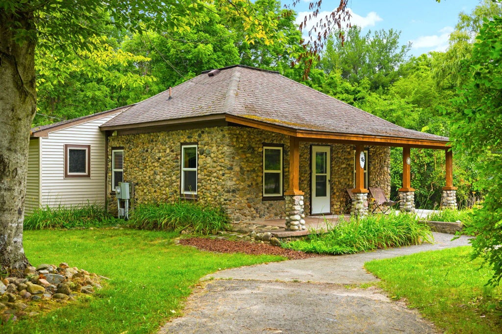 Step into a piece of Torch Lake history with this charming 1910-built cottage, lovingly maintained and brimming with character. Perched on 1.3 acres of private, wooded land, this property offers peep views of the iconic turquoise sparkle of Torch Lake and unmatched access to one of Michigan's most sought-after destinations. Just 0.2 miles from the closest lake access—one of four available from Lake Street below—you can start your mornings with a quiet paddle, watch the sunset over the water, or spend your days at the shops in Downtown Alden or at the iconic Sandbar a quick boat ride away. The home itself has been thoughtfully expanded with a 500+ square-foot addition (2005), creating a spacious living room and kitchen designed for connection. The kitchen features an eat-in dining spa and a breakfast bar, perfect for casual meals or gathering with friends after a day on the water. Two cozy bedrooms and a full bathroom make this cottage ideal for weekend getaways. The 1.3-acre lot offers untapped potential at the bottom of the hillwhether you envision an expanded outdoor living area, gardens, or future development. This property is more than a home; it's a chance to be part of Torch Lake's legacy. Whether you're dreaming of a quintessential family retreat or the perfect Airbnb investment, the location and charm make this a rare opportunity.