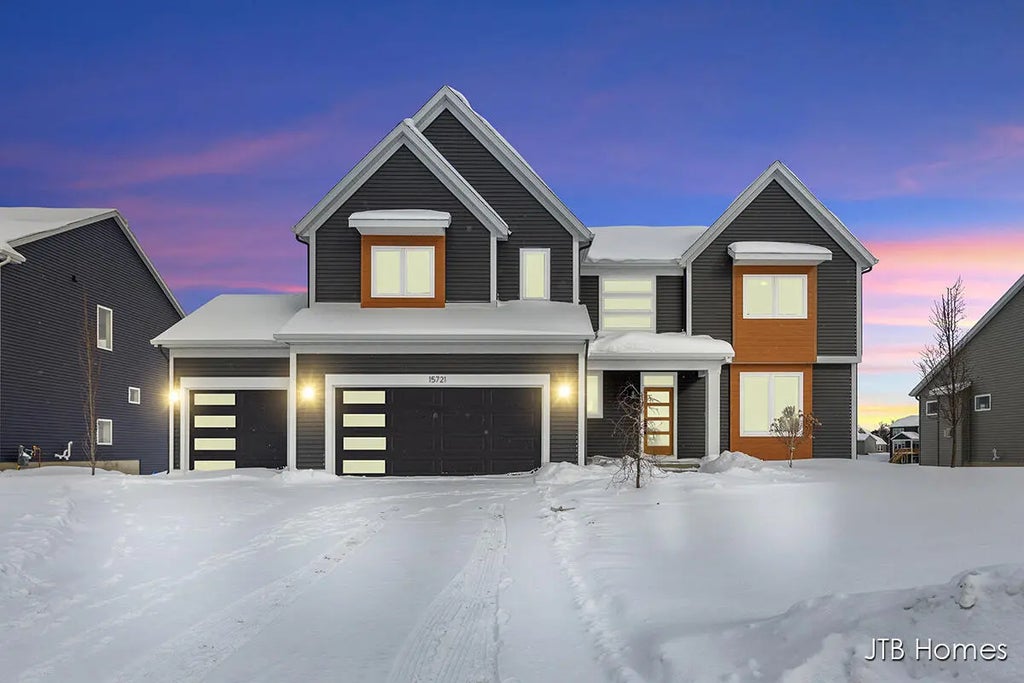 New Construction and Complete! Beautiful brand new Bay Harbor floorplan by JTB Homes offered in the popular pond neighborhood of Grand Haven. This home features a flex room off the two-story foyer, living room gas log Fireplace, Kitchen with center isle to seat 4, large walk-in pantry, solid surface counters, deluxe stainless appliance package, bench and cubbies, drop zone in the wainscot trimmed mudroom. Upstairs, the primary bedroom features a reading nook, ceramic tile shower with frameless euro-glass door. This home is on the pond with private pond frontage and spectacular views.