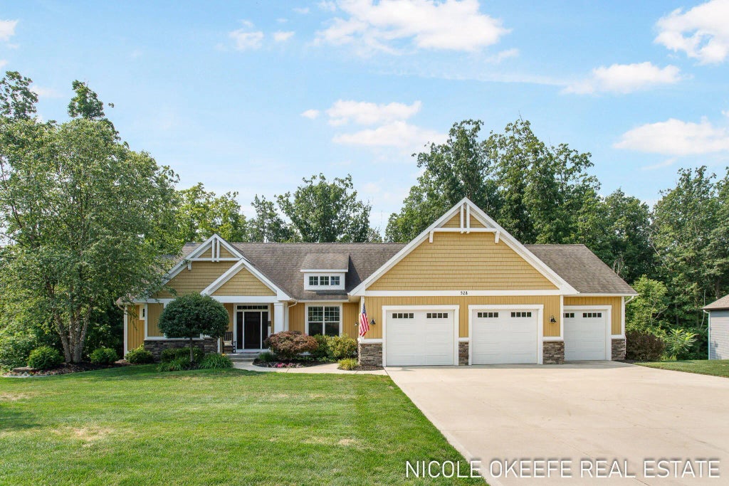 Welcome to the perfect balance of golf course living and your own sanctuary. Situated in Summerset West, Grandville's most sought after neighborhood, this beautiful Tim Schollaart custom designed Craftsman sits on an acre parcel with a deep treelined backyard and less than a 1 minute golf cart ride to the access point of Sunnybrook Country Club where all the amenities are at your fingertips. This sprawling 2368 square foot ranch is filled with quality woodwork, trim detail and customized features throughout. With deep pride in ownership and meticulous living, this home feels and looks brand new. An Owners Suite fit for a King or Queen with its own sitting room, fireplace, enormous bathroom with heated floors, a deep soaker tub and large dual head shower. A junior suite for guests, two main floor fireplaces, and a kitchen with cabinets and countertop space that goes on and on! An entertainers dream upstairs, downstairs, inside or out. Outdoor dining & entertaining is possible with the cedar encased 3 season screened in sunroom and uncovered Composite deck space that runs the length of the house. Access off the kitchen for those summer grilling nights! The lower level will impress with soaring ceilings, lots on sunlight, a wet bar, media area and storage beyond measure. Some key features worth noting: - The kitchen island actually moves depending on your kitchen needs - 1000 square foot complete garage with epoxy floors, water, extensive custom metal cabinetry & bench - Home wired for hot tub - Home wired for generator - Washer/Dryer less than a year new - All canned lighting throughout on dimmer switches - Dolby Atmos 7.2 Channel Surround Sound for lower level media room - Sonos platform individually controlled through zones - New carpet on main floor - Electric dog fence - Three fireplaces- Two-sided fireplace & second main floor fireplace in reading nook/eating area - Coffered ceiling in living room - 6' windows throughout - 12' slider to 3 season sunroom truly bringing outside & inside out - 16x16 3 season sunroom with cedar trim - 318 square foot composite deck - 6' extra deep soaker tub - Heated flooring primary suite - Large 9x13 walk-in close in primary suite - GE Advantium high speed oven (bake, convection, microwave) - Huge primary suite with tray ceiling, sitting room and large windows overlooking private backyard - Dining room sustains large gatherings - Smart home- exterior light control, Irrigation system Wi-Fi enabled, Blink camera system - LED landscape lighting - Mailbox mini replica of lines of exterior of house (a mini version of house) - Neighborhood is blessed with bussing services for the following school districts-Jenison, Grandville, Calvin Christian, Hudsonville Christian and Unity Christian