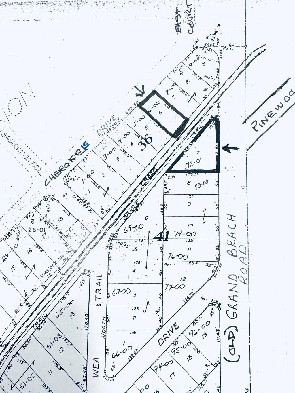 Triangular Lot on Grand Beach ready to build. Variance to build on front lot line and license to put septic in undeveloped road granted. Lot drops down for a perfect walk out lower level. Lot on the other side of the shallow creek makes it easy to get to beach at end of Avalon that never disappears even when the Lake is high. Michiana has tennis and Pickleball courts with great playground and Village Hall activities.