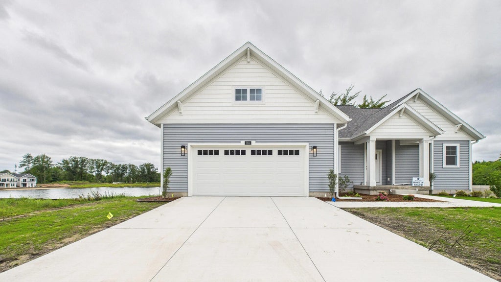 Experience the best of Norton Shores living at Atwater Springs, an exclusive new community surrounding the tranquil waters of Lake Lorraine. This stunning waterfront residence showcases the sought-after Dunlin plan, offering 1,456 square feet of thoughtfully designed living space with 2 spacious bedrooms and 2.5 bathrooms. An additional 1,035-square-foot unfinished walkout lower level provides endless possibilities for future expansion. Crafted with style and convenience in mind, the home features composite decking with black aluminum railings, white vinyl double-hung windows, gutters and downspouts, luxury vinyl plank flooring throughout the main areas, and plush carpeting in the bedrooms, stairway, and basement. Elegant quartz countertops, wire shelving, and a full landscaping and irrigation package—including a sandy beach—enhance both beauty and function.