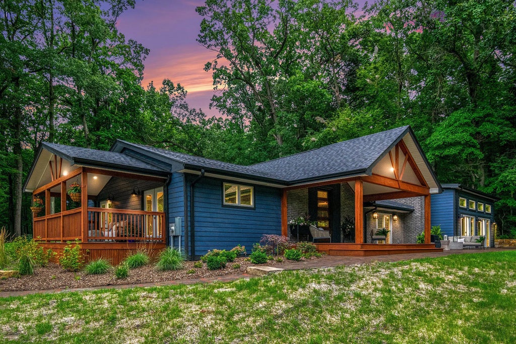 Meticulously remodeled home with no detail overlooked by a builder known for quality. Featuring high-end finishes throughout and designed with modern living in mind, this home offers large open spaces filled with natural light. A highlight is the custom bathroom accessible directly from the outdoor patio, perfect for outdoor entertaining. The stunning kitchen will inspire gatherings whether you're a cook or not. The outdoor living areas are equally impressive, with beautifully landscaped patios, porches, and decks ideal for relaxing, entertaining, or family movie nights. The large 3-season room provides a cozy retreat when the weather isn't cooperating. Nestled on a winding, wooded, and private road, this unique retreat captures the essence of Harbor Country's charm. A true sanctuary for those seeking a special, peaceful escape.