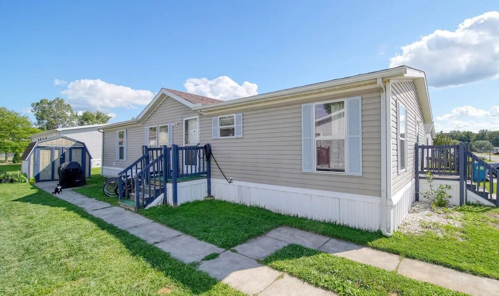 Nice move-in ready home in Sterling Estates! This home features 3 bedrooms, 2 full baths, laundry room, new flooring, large rooms, shed and patio. Nice location close to shopping and just a few minutes from downtown. Plenty of parking and guest parking close by. Nice community in Madison School District, trash pick up, play grounds, utilities underground, city water/sewer, large Community building and on-site management staff. Lot rent $465.