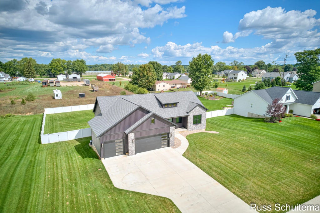 Simply stated--incredible! Built in 2022 and positioned in the popular Hudsonville school district, this three bedroom (could be converted to 5-6 bedrooms), 2.5 bath rancher has been lightly lived in and is handicap accessible featuring wide hallways and doorways. Nestled near the end of a cul-de-sac in a marvelous neighborhood, this home offers main floor living at its finest complete with beautiful high-end finishes and numerous built-ins. Trumpeting an open floor plan, the home boasts an endless amount of extras for today's savvy buyers. Highlighting the exterior this beauty features a beautiful vinyl fenced yard with two double gates. The exterior also possesses a beautiful, plush lawn with underground sprinkling, and exterior with tuxedo color siding with creative mines shadow play stone veneer. Some additional noteworthy exterior items include a 20x6 covered front porch, a 13x 12 deck with stairs, and a three stall garage with a second set of stairs for basement access. The interior offers nine foot ceilings, 400 series Andersen windows, wide trim, recessed lighting, and an 11x6 laundry room with a pet washing station area. Other interior amenities include a tankless water heater, beautiful kitchen area with an 8x3 quartz counter-topped island, kitchen pantry with electronic access code, and a private primary suite with dual sinks, 11x6 walk-in closet, and an incredible tiled shower. The basement is a blank canvas with daylight windows and is plumbed for an additional bath and second kitchen. Furthermore, the home is phenomenally insulated! Please hurry--this is a beauty! Buyer and buyer's agent to verify all information.