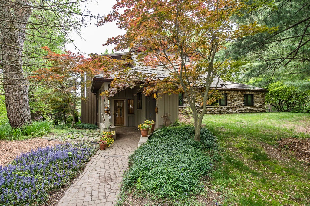 This stunning 4-bedroom, 4.5-bathroom lakefront escape is set on 6.1 acres of lush, wooded privacy along the shores of Pleasant Lake—a private, all-sports lake perfect for year-round activities. With its charming cottage-inspired design and tranquil surroundings, this property strikes the perfect balance between serenity and adventure. Recent updates enhance its appeal: a durable 2-year-old steel roof, a new water heater, enduring 15-year-old Pella windows, a newer furnace, and freshly stained cedar siding that exudes timeless character. As you step into the welcoming slate-tiled foyer, the home's grandeur unfolds before you. The open floor plan offers breathtaking lake views from nearly every room. The living room, with its rich cherry wood floors and a floor-to-ceiling Fieldstone wood