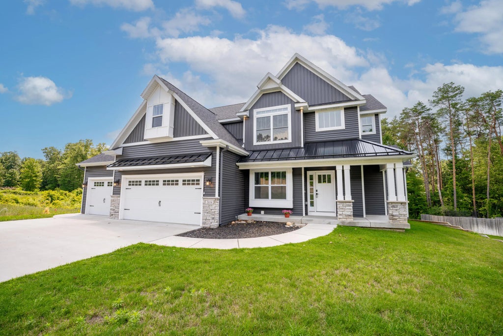 Discover this exquisite, newer two-story home with a finished walkout basement in the Tuscany plat, Mattawan schools! Nestled on a spacious approximately 0.7-acre lot, this residence offers unparalleled privacy. Boasting over 3500 sq ft of luxurious living space, it includes 5 bedrooms and 3.5 baths. The charming front porch welcomes you into the front foyer, providing easy access to the main floor office adorned with elegant wainscoting. Perfect for entertaining, the open layout seamlessly connects the kitchen, dining, and great room. The great room features a cozy gas fireplace, built-in shelves, & views of the private wooded backyard. The chef's kitchen showcasing beautiful cabinetry, quartz countertops, a center island with a snack bar, stainless steel appliances, & pantry. The main