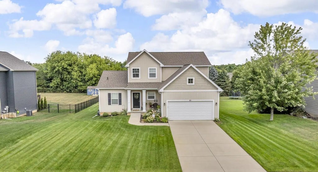 CONTEMPORARY COMFORT MEETS NATURAL BEAUTY IN WESTERN SCHOOLS! Welcome home to this newer-built 2-story design offering 3 spacious bedrooms & 2.5 baths, thoughtfully designed for modern living. Set in a friendly neighborhood w/paved roads & sidewalks, you're less than 2 miles from The Falling Waters Trail & Lime Lake County Park. Spring Arbor University, local restaurants & other conveniences are just a short walk away! The covered front door opens the door to the main floor boasting an open-concept layout filled w/soaring 9-ft+ ceilings, light-filled living room framed by a stunning wall of windows & views of the private backyard leading up to a row of natural evergreens. The chef's kitchen features rich warm-toned cabinetry, tall upper cabinets, enter island & sleek stainless steel appliance package! The main-level primary suite is a peaceful retreat, complete with a walk-in closet, custom built-in organizers & spa-like ensuite bath - dual sinks and walk-in shower. Upstairs, a cozy reading nook leads to two generously sized bedrooms and full bath with separate shower/sink setup - ideal for busy mornings. Endless possibilities provided in the lower level where massive daylight windows offer the perfect set up for additional bedrooms, home office, gym or theater plus it's already plumbed for a third full bath, ready for your future expansion. Outdoors you'll find lush, green lawns, level lot with bonfire pit & a stunning composite deck you'll never want to leave. Beautiful stairs carry you down from the deck to the yard where there's plenty of room to roam, play, garden & more! This home is move-in ready so call today to schedule your personal tour!