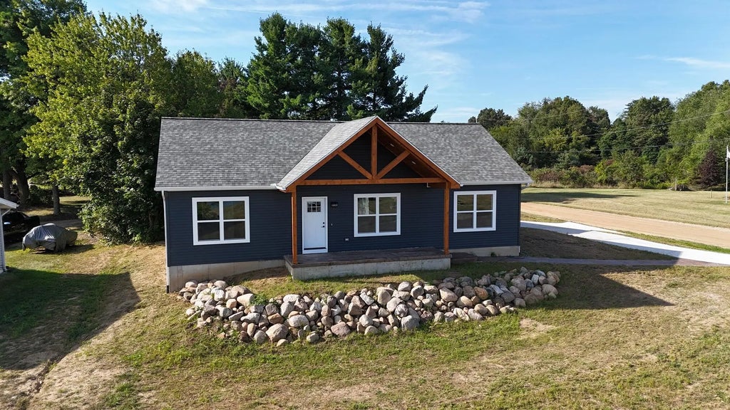 This new construction home sits atop a hill with nice views overlooking beautiful Lake Leann. Association access park is across the street. This property is part of the Lake Leanne Property owners Association with annual dues of $170. Taxes and tax values were based on vacant land value. The main floor is an open floor plan and has 3 bedrooms. The primary is at one end of the home with its own private ensuite bath while the other two bedrooms are situated at the other end of the home near the other full bathroom. There is also a full unfinished basement with an egress window and an attached garage just off of the main floor laundry room. Builder is also willing to build on your lot or their own lot. Information is believed to be accurate, but not guaranteed. Buyers Agent to verify all info. Link to Lake LeAnn Mooring (Docking) info: https://lakeleann.org/rules.html#watercraft