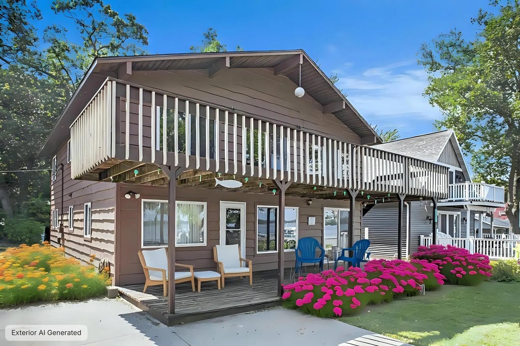 🏡 Stunning Lake House Retreat Enjoy 59 feet of pristine waterfrontage complete with a sandy beach and a protective seawall—perfect for swimming, kayaking, or soaking up the sunset. The lake has great fishing. This charming two-story home features: Two spacious bedrooms on each level. Full kitchens and cozy living rooms with fireplaces—ideal for year-round comfort Main-level laundry room for convenience. Upper level with very similar layout, minus the laundry—perfect for a mother-in-law suite, guest quarters, or extended family. Whether you're looking for a peaceful getaway or a multi-generational home, this property offers flexibility, comfort, and unbeatable lake views. This home also offers a hip barn for all your storage needs. Home had a major fire in 2022. There were $300,000 in repairs. In 2023 everything was replaced down to the studs. New furnaces, new wiring, plumbing, bathrooms, doors, windows and chimney. Roof is only 3 years old. There is a 100 (96) year prepaid lease agreement for the waterfront and deck across the road.