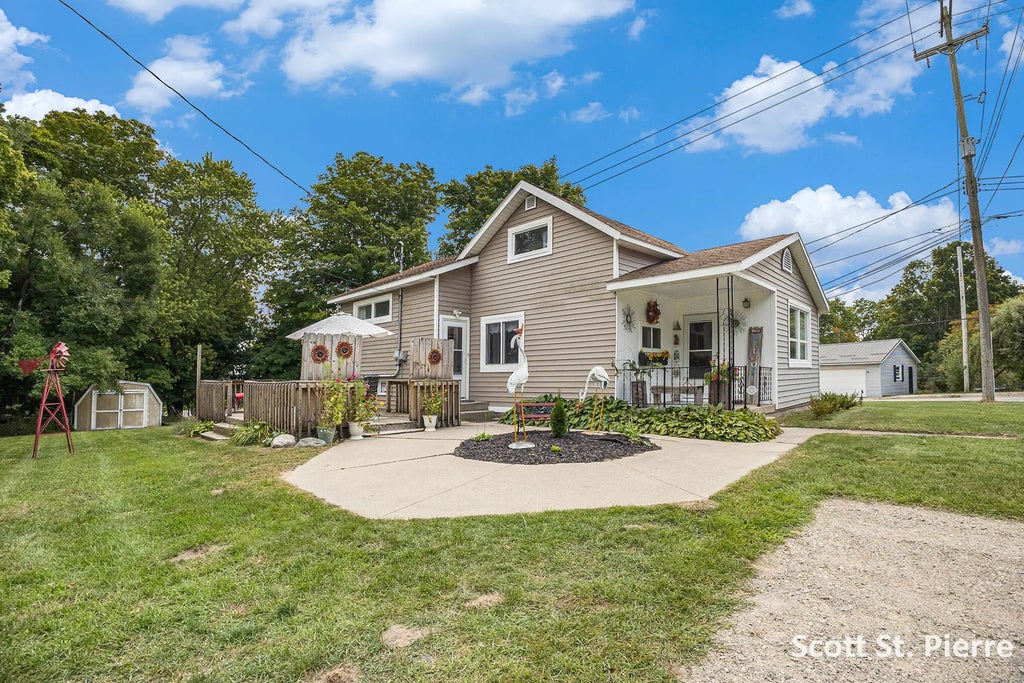 Welcome home to this inviting 2-bedroom, 1-bath residence with a finished attic bonus room, set on a spacious corner double lot in the heart of Montague. The bright and comfortable living room opens to a beautifully updated kitchen featuring shaker-style cabinets, stainless steel appliances, and modern lighting. Enjoy the outdoor living area with a large deck, fire pit, and landscaped yard—perfect for relaxing or entertaining. The full basement includes two egress windows, offering potential for future living space or storage. Just minutes from local shops, parks, and the popular Hart-Montague Bike Trail, this home combines small-town charm with modern comfort. A 'Shield Essential' Home Warranty from American Home Shield is included for peace of mind, with coverage details conveniently located in the kitchen. The City of Montague Zoning Department has confirmed a detached garage may be built, subject to zoning code. Buyer and buyer's agent to verify all information.