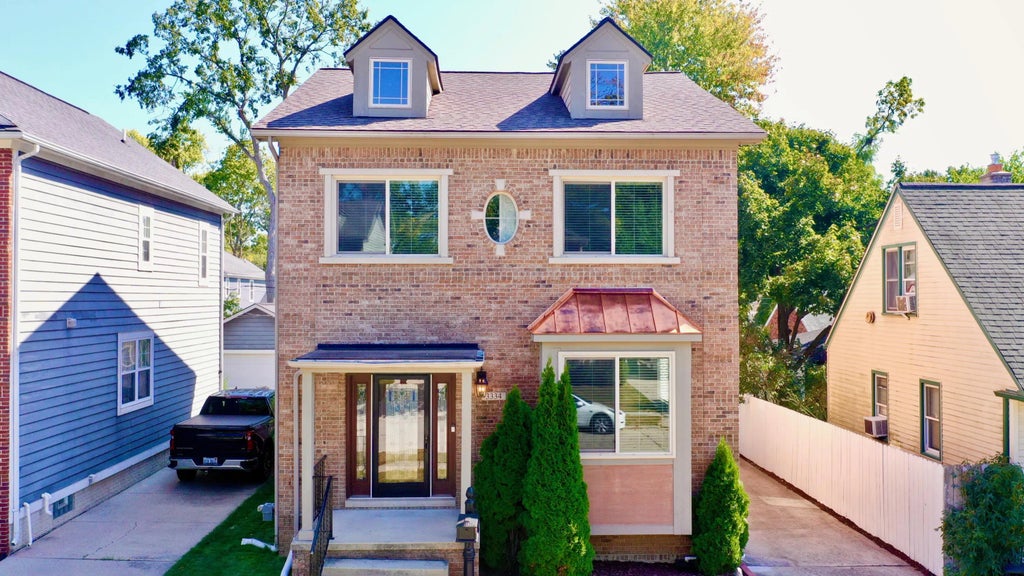 This newer build open-concept brick colonial is located in a desirable area of NW Royal Oak near Woodward Avenue and Corewell (Beaumont) Hospital. On the main level, the home offers 9-foot ceilings on the main level, a gas fireplace, granite countertops, stainless steel appliances, and hardwood flooring. Upstairs, the primary suite includes a tray ceiling, walk-in closet, ensuite bathroom with a jetted tub, and access to a private balcony. A second-floor laundry adds convenience. The finished basement features a wet bar and extra space for entertaining or relaxing. Outdoor features include a covered patio, fenced lot, a two-car garage. Updates include full remodel (2015), new roof (2022), fully lined sewer system (2024), and yard improvements (2025). The home is also equipped with a 50-amp external generator hookup and plumbed for an additional full bath in basement. Don't miss out on the opportunity to own this delightful home!