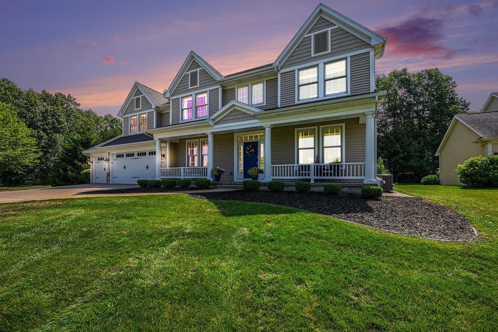 Welcome home to 6421 Cullys Trail! This AVB-built home in the sought-after ''Homestead'' neighborhood of North Portage has been completely updated and shows like a model. The chef's kitchen, designed by Kirshman Kitchen Design, features premium cabinetry, Wolf 6-burner gas range, Sub-Zero refrigerator, microwave drawer, coffee station, beverage center, and a stunning quartz island with seating for six. Gorgeous 5-inch quarter-sawn white oak floors flow throughout the main level. The family room offers a coffered ceiling , two story high windows, custom built-ins, and a stone fireplace. The classic center-hall layout includes two staircases and leads to four bedrooms upstairs, including a Jack-and-Jill bath, ensuite bedroom, and a luxurious primary suite with dual closets, soaking tub,
