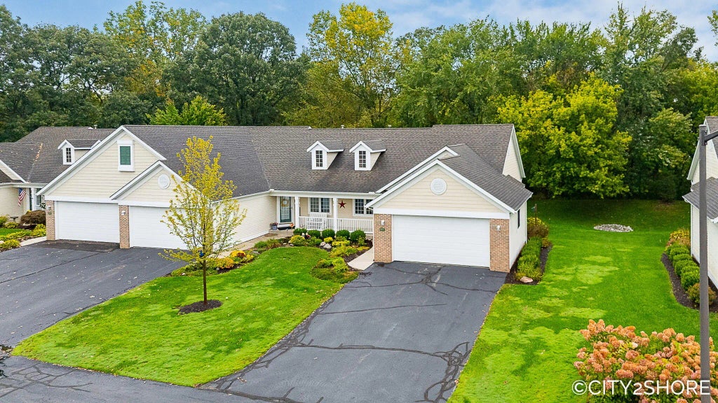Beautiful Zeeland End-unit condo that is move-in ready thoughtfully updated and immaculately prepared for you. The open floor plan features soaring cathedral ceilings, main floor laundry, a bright 4-season room overlooking a private wooded backdrop on the quiet cul-de-sac. 3 bedrooms/2.5 baths, and a spacious 2-stall garage, this home has room for everyone. The main floor second bedroom will make a perfect study/office. The daylight lower level includes a gas fireplace, an additional bedroom with walk-in closet, plus space for both a workshop and craft room. Recent upgrades make this home feel like new: a 2023 furnace and A/C, freshly painted garage, front sidewalk, refreshed interior paint throughout, and meticulously updated trim, hardware, and fixtures. The kitchen features newer appliances (approx. 5 years), and water heater is equipped with a circulating pump for instant hot water. Enjoy peace of mind in a pet-friendly(1 dog or 1 cat allowed) community. Move right in.
