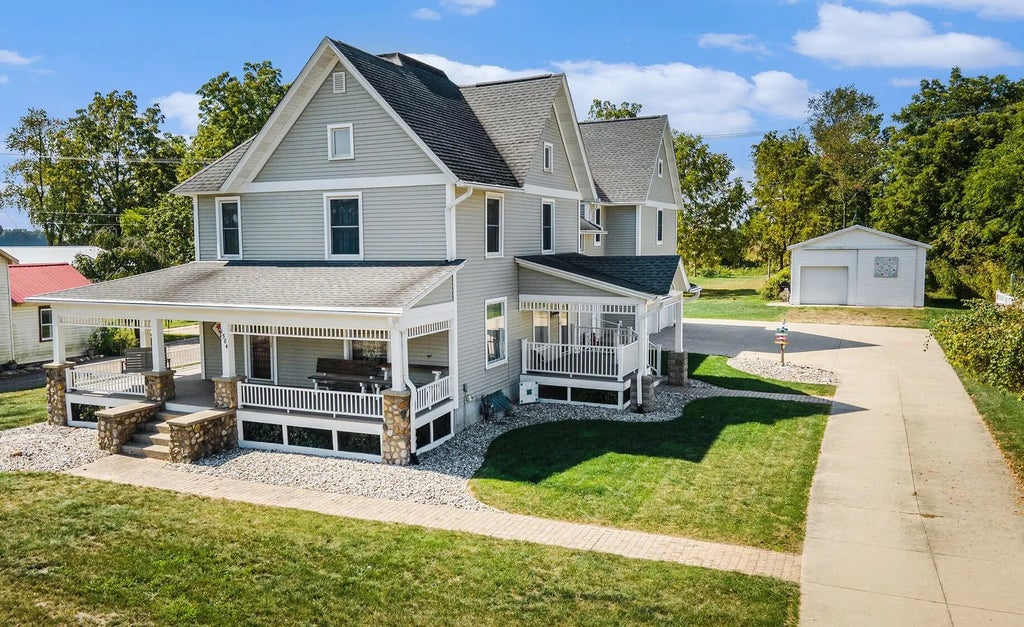 TRULY A MUST SEE!! You are sure to be impressed w/this immaculate & lovingly restored/renovated historic home. After years of admiring the home of her former elementary teacher, the seller was thrilled to purchase this incredible home. Charming front & side porches redone w/composite decking. The woodwork throughout is stunning! Beautifully refinished wood flooring, original trim, impressive oak stairway off front entry, wood pocket doors, original fireplace w/cast iron front & impressive trim/tile detail. Gorgeous kitchen w/custom cabinets, center island & built-in glass display cabinet. Main floor bedroom w/walk in closet, full bath w/low threshold shower, & laundry room. Upper level adds 2,000sqft w/4 beds, full bath w/shower & soaker tub, bonus room w/stairs leading to kitchen, & HUGE family/rec room above the 2+ stall garage w/stairway & dumbwaiter to lower level. Large yard w/.81 ACRES, paved drive & 24x26 POLE BARN w/8x9 overhead & 10x12 sliding door. Agent is related to Seller