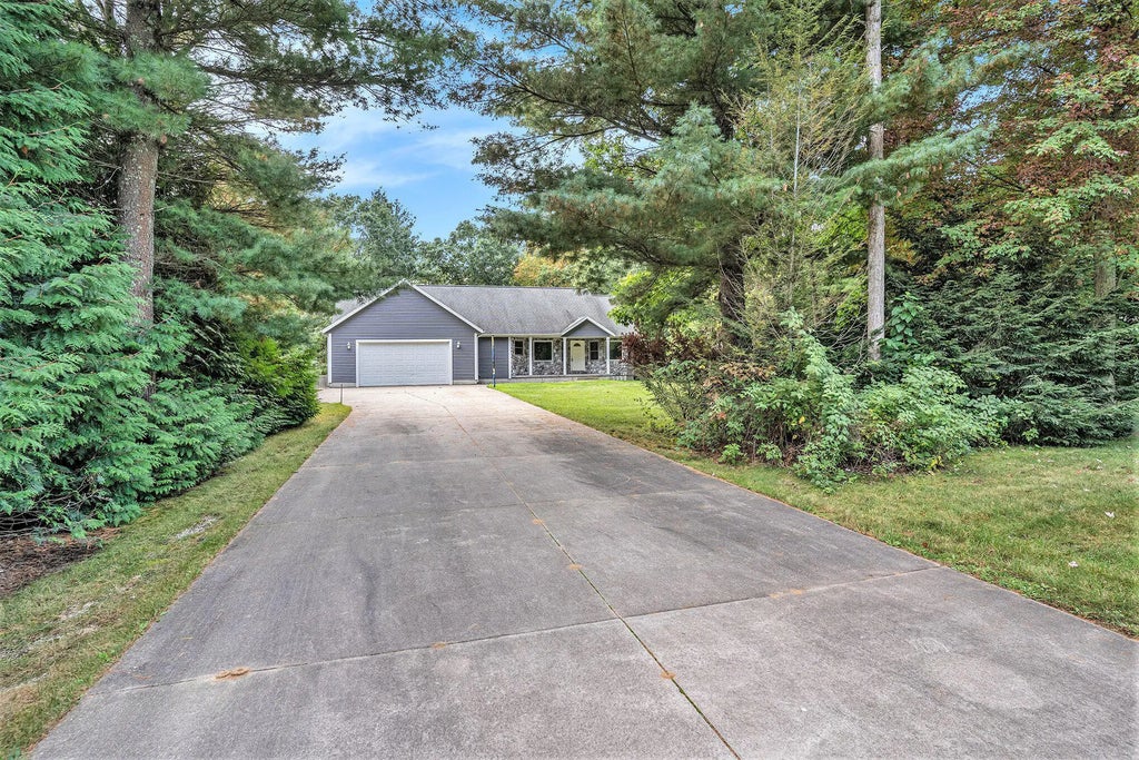 This 4 bedroom, 3 bath home is in a neighborhood but is not in an association. Living room has vaulted ceiling, with slider out to large deck. Full walkout basement offers a large living room, full bath, fourth bedroom, and storage. The walkout basement leads out to a patio and a large private backyard. The backyard is fenced in with one single and one double door. New carpet 9-2025, new 20 gallon per minute well pump 9-2025, hot water holding tank 2025, 2 zone drain tile system by Ayers with battery backup, 200 amp electrical service, furnace new blower motor 2023, UGS w/self draining sprinklers 3 zones with 4th ready to wire, solid pine wood interior 6 panel doors, septic 2 tank system. 26x30 attached garage fully insulated and finished with hot and cold faucets.