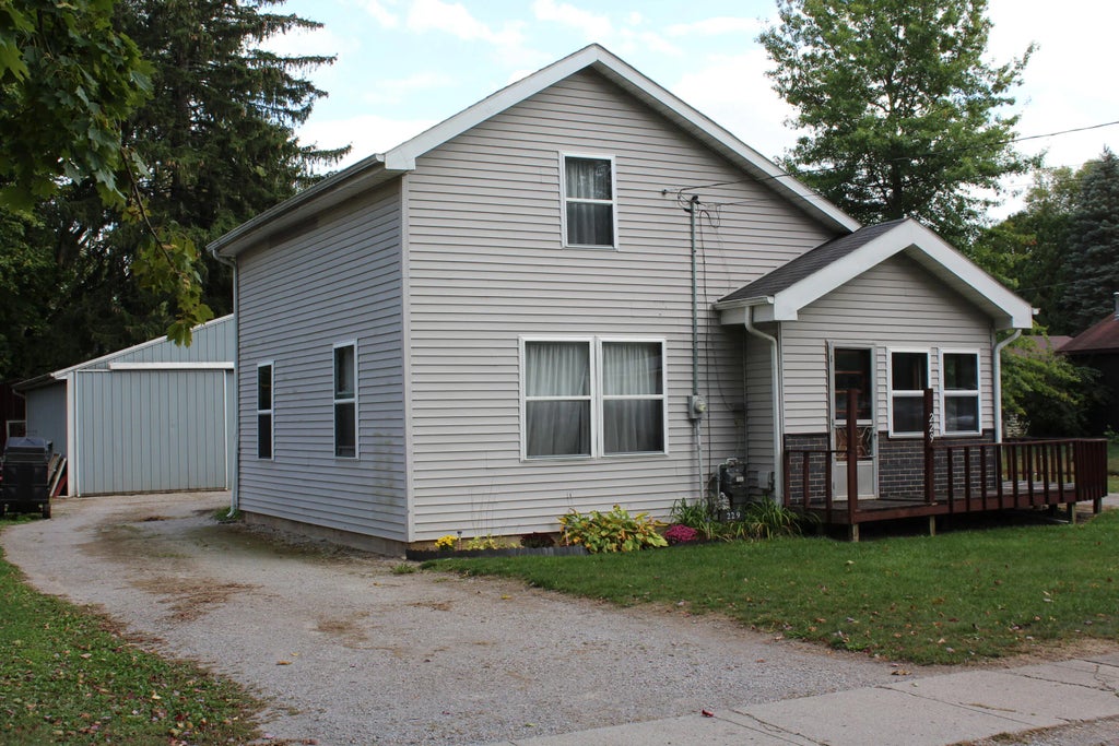 Nice 1 1/2 story, 3-bedroom, 1 full bath home located in the Village of Sheridan. 20x36 outbuilding. Appliances included. Main floor Laundry. Enclosed front porch. Deck at the side and back of home. Some newer carpet and windows. Additional lot available to purchase.