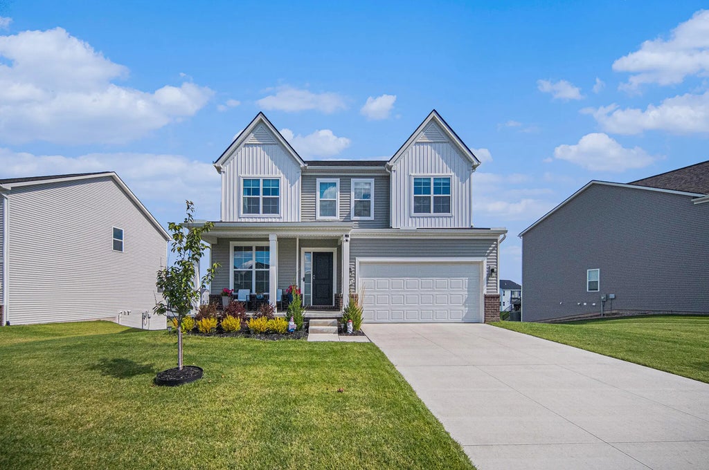 Welcome to this beautifully designed 3-bedroom, 2.5-bath home with a 2-car garage. From the charming front porch to the open-concept living areas, every detail invites comfort and style. The versatile flex room offers space for an office, gym, or playroom. The kitchen shines with quartz countertops, GE® stainless steel appliances, and a spacious walk-in pantry—perfect for everyday living or entertaining. Upstairs, discover a cozy loft, two bright bedrooms, and a large owner's suite with dual sinks, a walk-in shower, and a spacious closet. Step outside to enjoy a new deck, lush grass, and a convenient sprinkler system—ideal for relaxing and making lasting memories.
