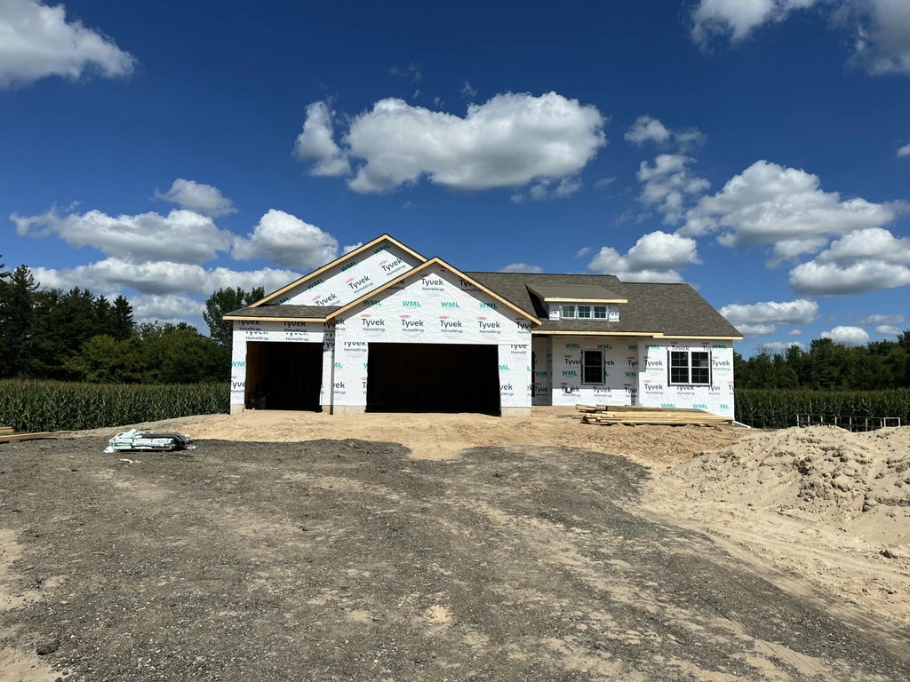Amazing new construction ranch-style home offering 1,730 square feet of modern living space on a spacious 2-acre lot. Designed for comfort and style, this residence features a large yard perfect for outdoor activities and privacy, set way back off a private road for added tranquility. Inside, you'll find a high end finishes including a beautiful tile master shower, solid surface countertops in the kitchen and baths, and a cozy fireplace to enhance the inviting atmosphere. Featuring 3 bedrooms and 2.5 baths, this home is main floor living at its finest. The basement, though unfinished, is set up for an additional 2 bedrooms, 1 full bathroom, and a large rec-room. Enjoy the perfect blend of rural serenity and contemporary finishes in this exceptional property. Don't miss the opportunity to own this spectacular new home. Make it yours today!