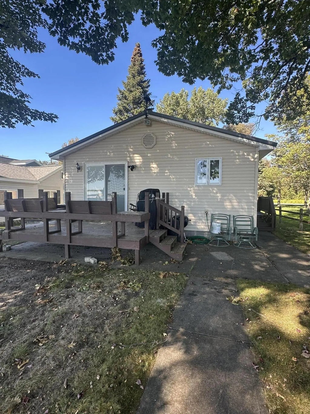 Don't wait to see this charming 3-bedroom, 2-bath lakefront home on beautiful Houghton Lake! Enjoy your own private dock for fishing, boating, kayaking, or simply relaxing as you take in breathtaking sunsets over the water. Step out through the sliding door with built-in blinds onto your spacious deck — the perfect place to entertain, unwind, and soak up the lake views. This well-maintained home features a new metal roof (2024), new furnace, and new tankless water heater for comfort and efficiency. Inside, you'll love the new vinyl flooring and the convenience of all appliances included, even a new refrigerator. The property also offers a large 2-car detached garage for storage or lake gear. Additional highlights include central air and Houghton Lake Schools. Whether you're seeking a full-time residence or a second vacation getaway, this move-in ready lakeside retreat is waiting for you to start making lasting memories today!