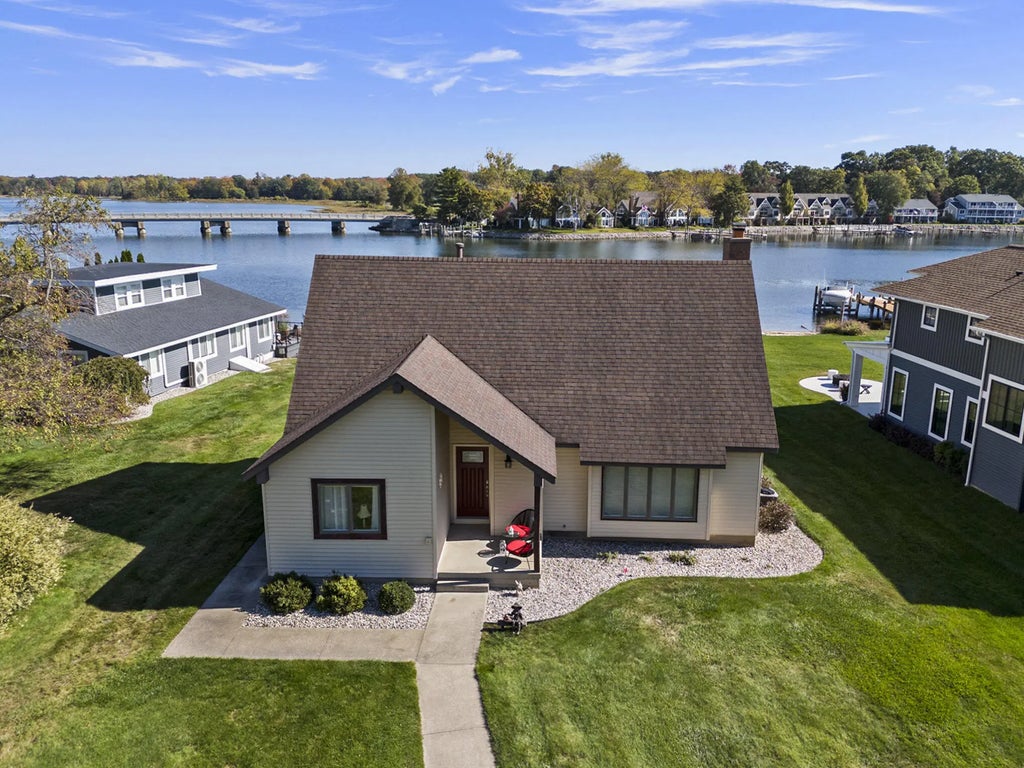 3 bed, 2.5 bath traditional 2-story home in a quiet neighborhood. Built in 1983 & lovingly owned by the same family since. Situated on a flat, over ½-acre lot w/ lush lawn that gently slopes to 67 ft of private Spring Lake frontage?no stairs needed to reach the water. Enjoy your own permanent dock for easy lake access. Main floor offers 2 living spaces, open-flow kitchen, laundry, ½ bath, & primary suite w/ walk-in closet & full bath. Upstairs: 2 spacious bedrooms & another full bath. Detached 2-stall garage included.