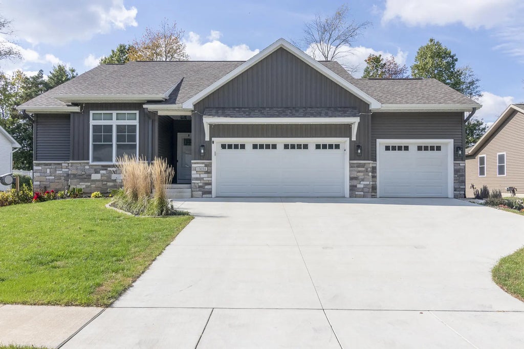 Welcome home! This 4 bedroom, 2 bath ranch in Portage's highly desirable Austin Shores neighborhood is move-in ready & designed for comfortable family living. Built in 2023, it has been beautifully maintained & now includes a newly finished daylight basement for even more space to enjoy. The open main floor is filled with natural light, highlighted by tray ceilings & a cozy gas fireplace. The kitchen features a large center island, GE stainless steel appliances, a walk-in pantry, & a versatile 2nd pantry or flex space. Just off the kitchen, the dining area opens to the upper deck; ideal for indoor/outdoor entertaining. A convenient mudroom connects the main floor laundry to the attached 3-stall garage. 3 bedrooms & 2 full baths complete the main level, including a primary suite with tray ceilings, a spa-like bath with dual vanity & tile shower, plus a walk-in closet with custom built-ins. The newly finished basement expands the home's living space with a spacious rec room, 4th bedroom, home office, workout area, & thoughtful extras like a kids' corner tucked under the stairs & a custom doggy door with ramp. Outside, the fully fenced backyard is built for fun with a deck for entertaining, a play area, & a storage shed. This home offers the space, comfort & modern features today's families are looking for; schedule your showing today!