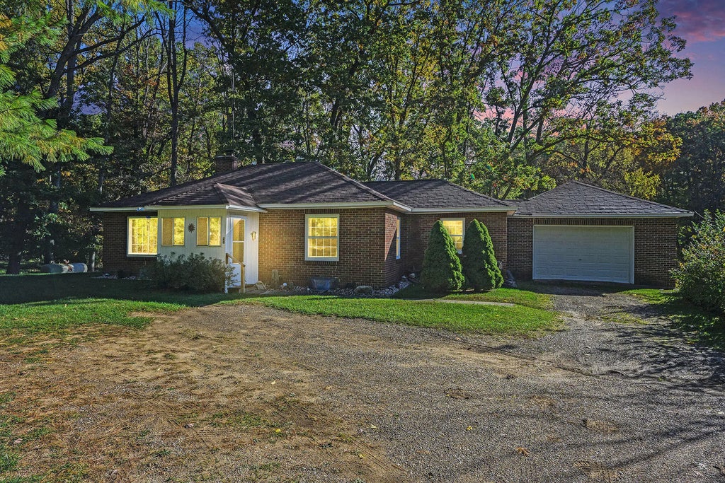 Charming Home on Three Wooded Lots! This inviting 2-bedroom, 1-bath home is perfectly situated on three beautiful wooded lots, offering both privacy and natural beauty. Step inside the spacious living room featuring a tray ceiling and a cozy woodburning fireplace with insert, perfect for relaxing on cool evenings. The full unfinished basement provides endless potential—finish it for additional living space, a recreation area, or extra storage. Convenient main floor laundry (with additional hookups in the basement) adds flexibility. The attached 2-car garage offers plenty of room for vehicles and storage. Enjoy the peaceful, wooded setting while still being close to town amenities—this property offers the best of both worlds!