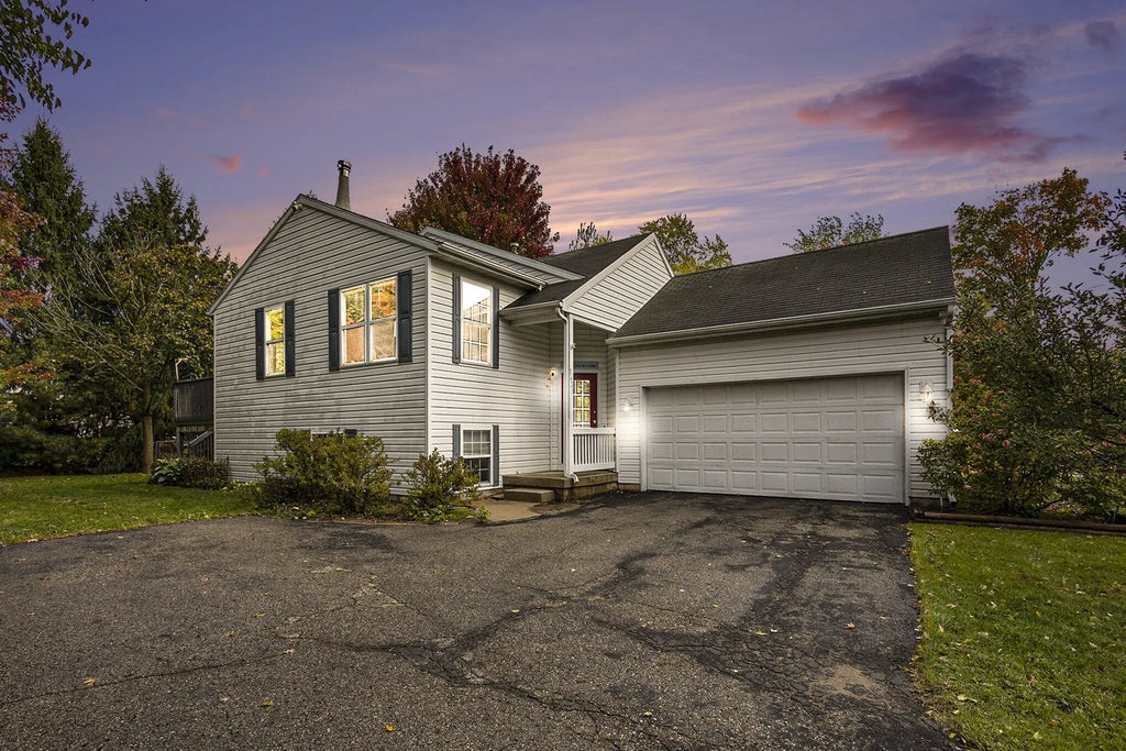 Location, location, location! 4 bedroom, 2 full bath house situated on a half acre. The living room and dining room have cathedral ceilings and a wood burning fireplace. Primary bedroom has a large walk-in closet and access to the full bathroom. Handy work station is perfect for using your laptop. Updated flooring, counter tops and a new dishwasher. The daylight level has two additional bedrooms, a large family room with built-in book shelves, an updated full bathroom, laundry, and a large storage area. Backyard dog run and invisible fence available. Fire pit and landscape pond add to the outdoor enjoyment. Call today to arrange your personal tour.