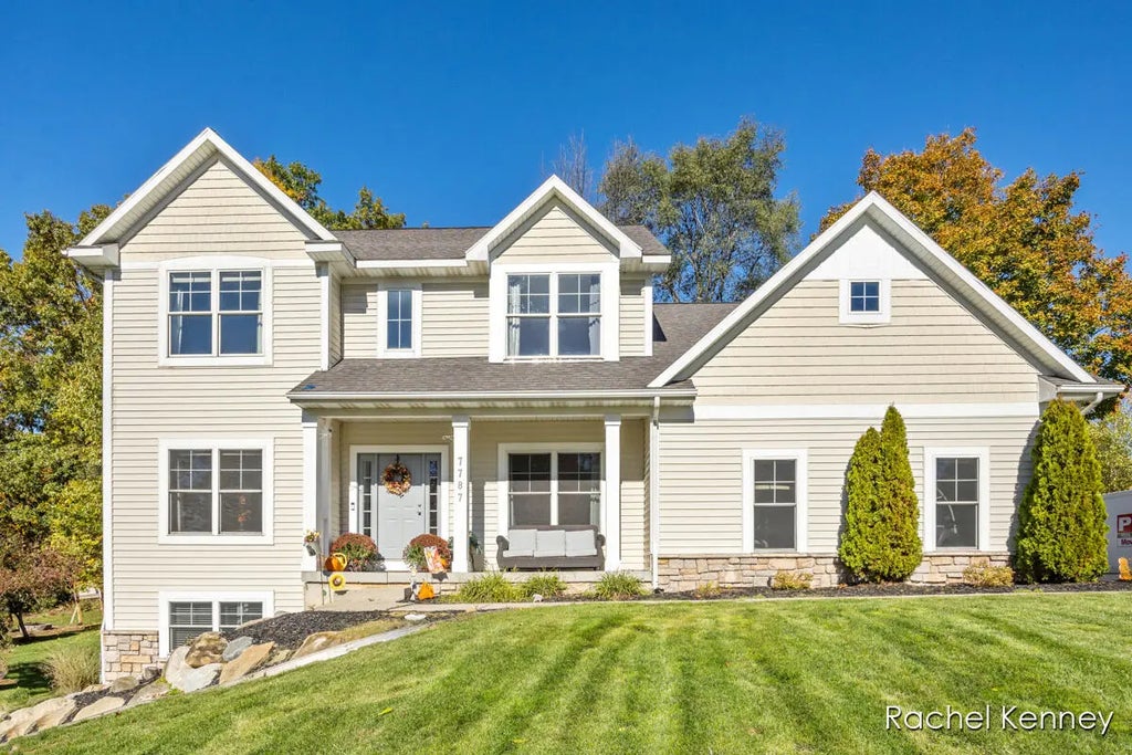 Welcome to this beautifully maintained 4-bedroom, 3.5-bath home, perfectly situated on a peaceful 0.54-acre wooded lot in the desirable Hunters Way neighborhood of Cascade Township. Step inside to discover a bright, open floor plan featuring hardwood floors, tall ceilings, and abundant natural light. The spacious kitchen showcases quartz countertops, upgraded stainless steel appliances, and a gourmet layout ideal for both entertaining and everyday living. The main floor offers a sunny dinette, a comfortable family room with fireplace, and a flex room that can serve as a formal dining room, living room, or home office/library. Upstairs, you'll find four generously sized bedrooms with new carpet, each with a walk-in closet. The primary suite features a vaulted ceiling, private bath with large shower, double vanity, and ample storage. The walkout lower level adds valuable living space, including a full bath, a large flex area perfect for a gym or playroom, built-in storage, and a media room ideal for movie nights or game days. The home also features an oversized 3 stall garage with built in storage, a new oversized central AC, and tankless water heater. Outside, enjoy a spacious deck, fully fenced backyard, shed, and park-like setting surrounded by mature trees that provide privacy and tranquility. This home seamlessly combines modern comfort, thoughtful updates, and a serene natural settinga rare find in prime Cascade Township.